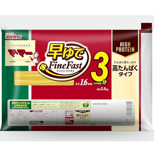 マ・マー 高たんぱく スパゲティ 早ゆで 3分 1.6mm 2.5kg( 約25人前 )大容量 パスタ 麺 ( タンパク質 / 乾麺100g当たり 20.3g / 栄養バランス ) まとめ買い アルデンテ 時短 ごはん作り 簡単調理 手軽 FineFast