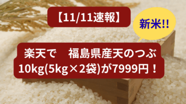 【11/11速報】楽天で【新米】福島県産天のつぶ 10kg(5kg×2袋)が7999円!