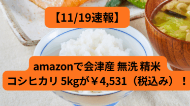 【11/19速報】amazonで会津産 無洗 精米 コシヒカリ 5kgが¥4,531(税込み)!