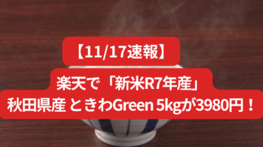 【11/17速報】楽天で「新米R7年産」 秋田県産 ときわGreen 5kgが3980円