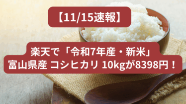 【11/15速報】楽天で「令和7年産・新米」富山県産 コシヒカリ 10kgが8398円