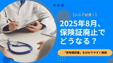 お役立ち【シニア必見!】2025年8月、保険証廃止でどうなる?「資格確認書」を分かりやすく解説 【今後どうなる?】と不安な高齢者の方へ。ご安心ください、マイナ保険証がなくても「資格確認書」が無料で届くので大丈夫。病院のかかり方を分かりやすく解説します。 2025.07.31お役立ち生活