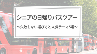 お役立ちシニアの日帰りバスツアー|失敗しない選び方と人気テーマ5選 「運転は不安だけど日帰りで気分転換したい」そんなシニアの方へ。体力に自信がなくても安心なバスツアーの選び方を、5つのチェック項目で徹底解説。信頼できる会社の見分け方から温泉・グルメ等の人気テーマまで紹介。計画いらずで最高の思い出を。 2025.07.18お役立ち生活