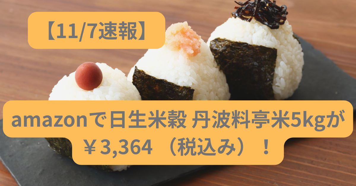 amazonで日生米穀 【精米】丹波料亭米(丹波産10割) 5kgが¥3,364 (税込)です。